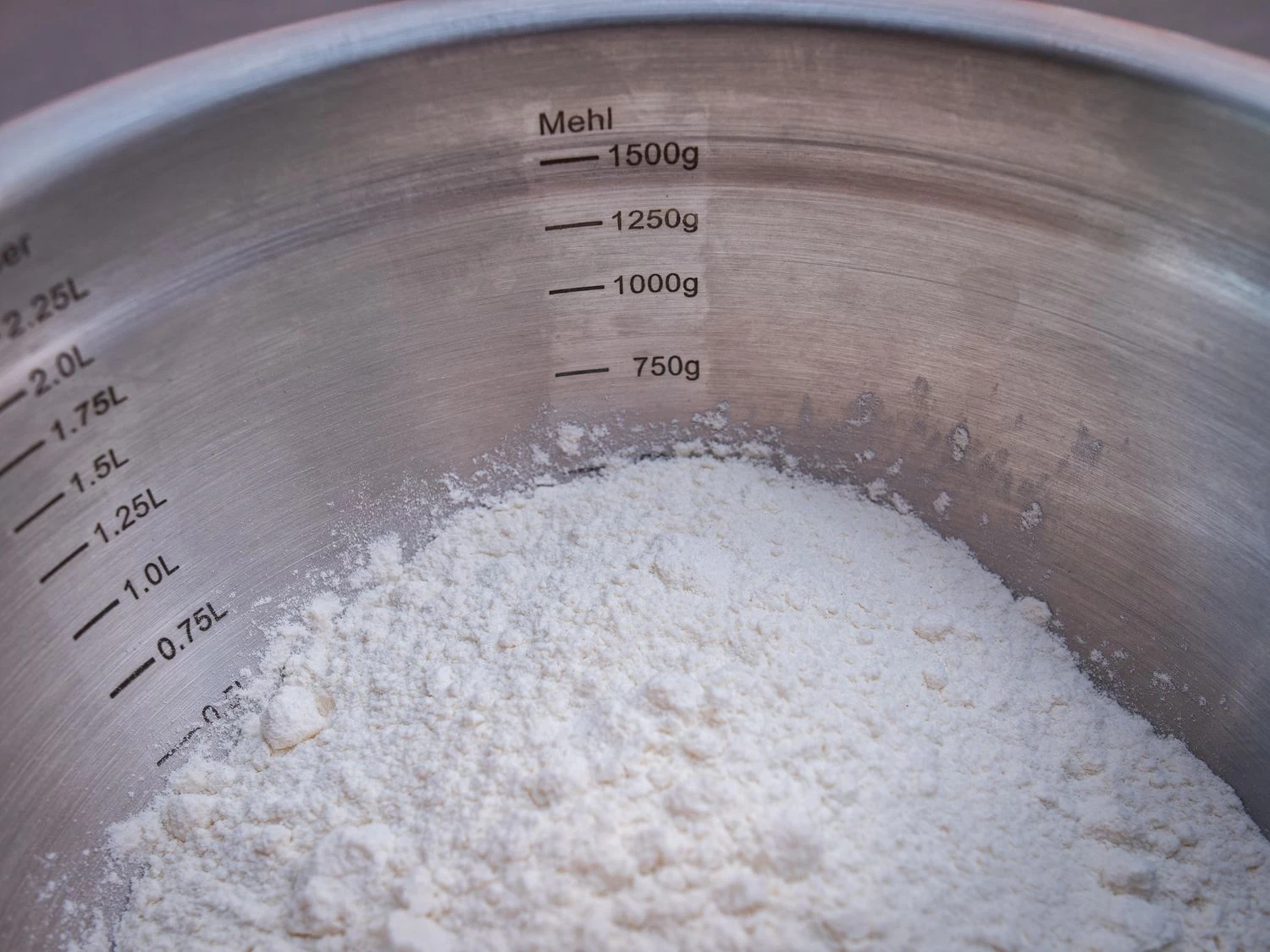 Im Inneren der Schüsseln befindet sich Messskalen für Wasser, Zucker und Mehl, so dass Lebensmittel problemlos ohne Messbecher und Waage eingefüllt werden können.