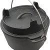 Insbesondere durch das verwendete Material ist der Feuertopf ein komplett universell einsetzbarer Begleiter beim Kochen und Grillen. Das massive und hochwertige Gusseisen sorgt für eine hervorragende Wärmeleitfähigkeit sowie Wärmespeicherung, wodurch die Speisen im Dutch Oven sehr gleichmäßig gegart werden.