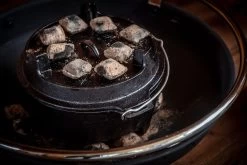 Bei der Befeuerung mit Briketts werden übrigens sehr präzise und gleichmäßige Temperaturen erzielt. Durch die Menge der glühenden Briketts, welche unter und auf den Gusseisentopf gelegt werden, kann die Temperatur individuell von Niedrigtemperatur bis hin zu hohen Temperaturen geregelt werden. Das macht den Dutch Oven zur echten Outdoorküche!