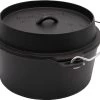 Damit ist der Dutch Oven ohne Füsse ideal für den Einsatz auf dem Gasgrill, Holzkohlegrill oder dem Herd geeignet und kann sogar im Backofen genutzt werden. Befeuern Sie den mobilen Gusstopf unterwegs einfach mit Briketts oder stellen ihn in eine Feuerstelle. Genießen Sie wo immer sie möchten besonders köstliche und perfekt zubereitete Gerichte aus dem Dutch Oven.
