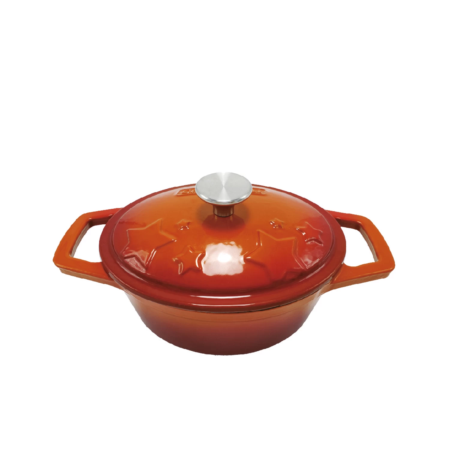 | Produktname: | Grillfürst Dutch Oven Sternentöpfchen / Gusseisen Bräter – emailliert – S – orange |