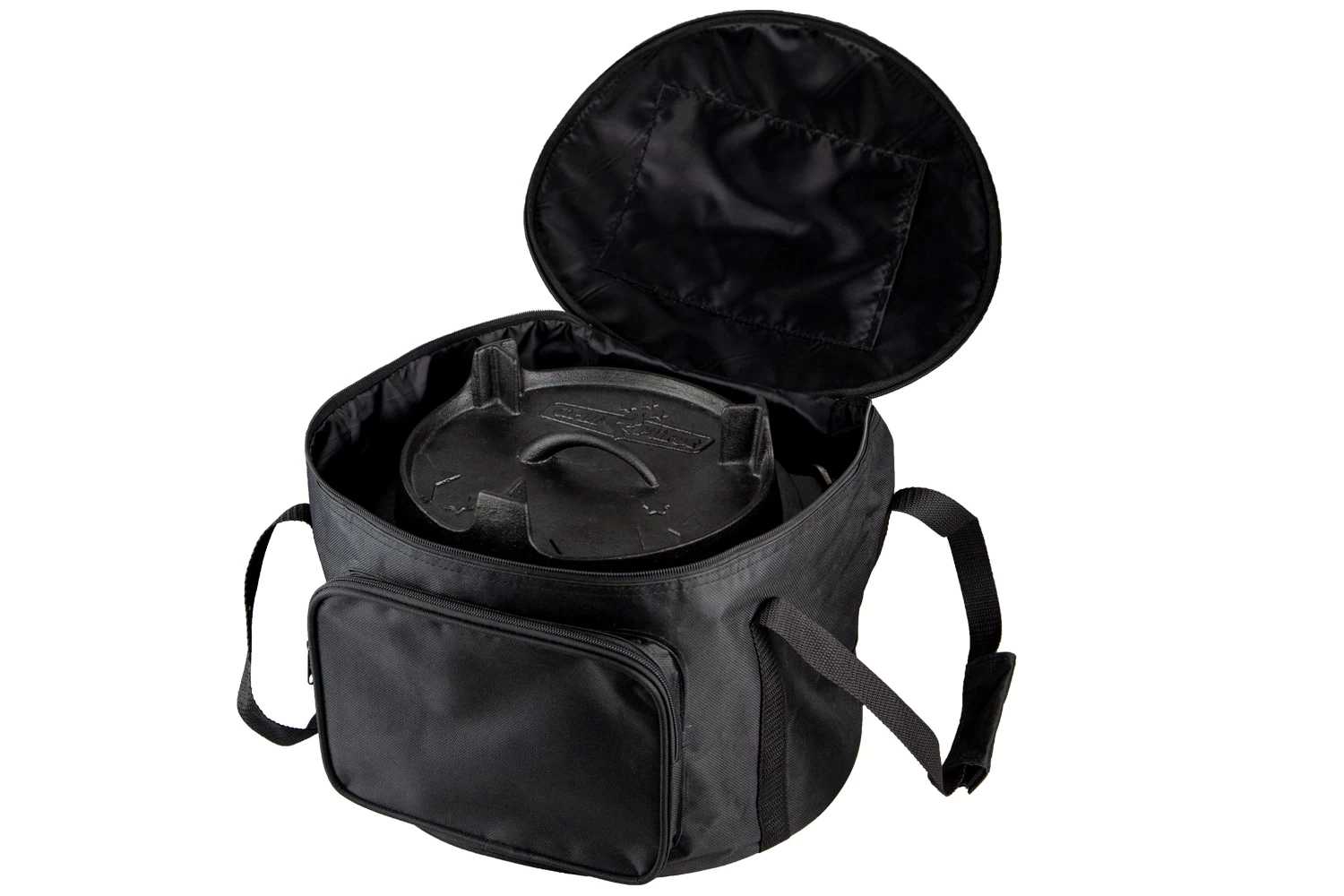 Mit der praktischen Tragetasche transportieren Sie Ihren Dutch Oven bequem und sicher zu seinem nächsten Einsatzort und verwahren ihn sauber und vor Feuchtigkeit sowie Beschädigungen geschützt.