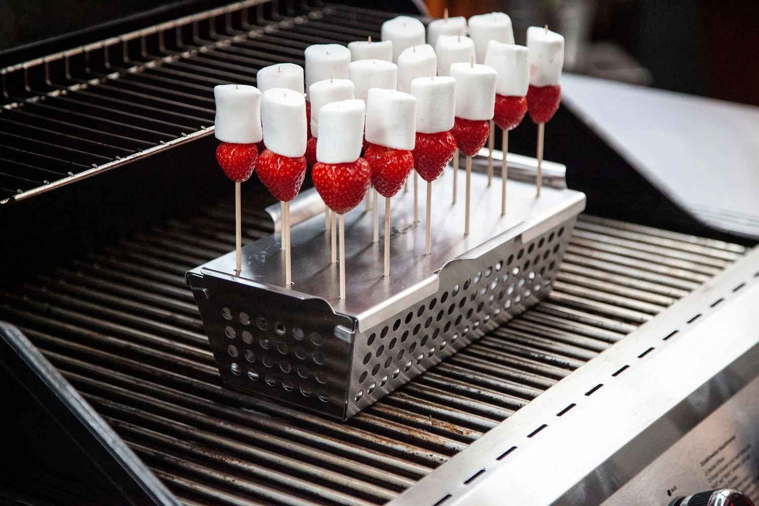 Reichen Sie die fertig gegarten Leckereien elegant direkt aus dem Halter. Bis zu 18 Spieße können im Spießhalter untergebracht werden – eine enorme Platzersparnis auf der Grillfläche, so dass nebenbei auch weiter gegrillt werden kann.