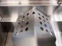 Besonderen Wert haben wir auch hier auf die Verarbeitung und das verwendete Material gelegt. Der mobile Gasgrill besitzt daher für alle gängigen Verschleißteile eine Edelstahl-Ausführung um eine lange Haltbarkeit zu erzielen. Die Edelstahl-Stabbrenner besitzen massive 1,3mm starke Edelstahl – Flammenschutzbleche. Das Fettauffangsystem besteht aus einer fest arretierten Edelstahlabdeckung im Inneren des Garraums und einer darunter sitzenden, nach vorn herausziehbaren Edelstahl – Fettauffangwanne.