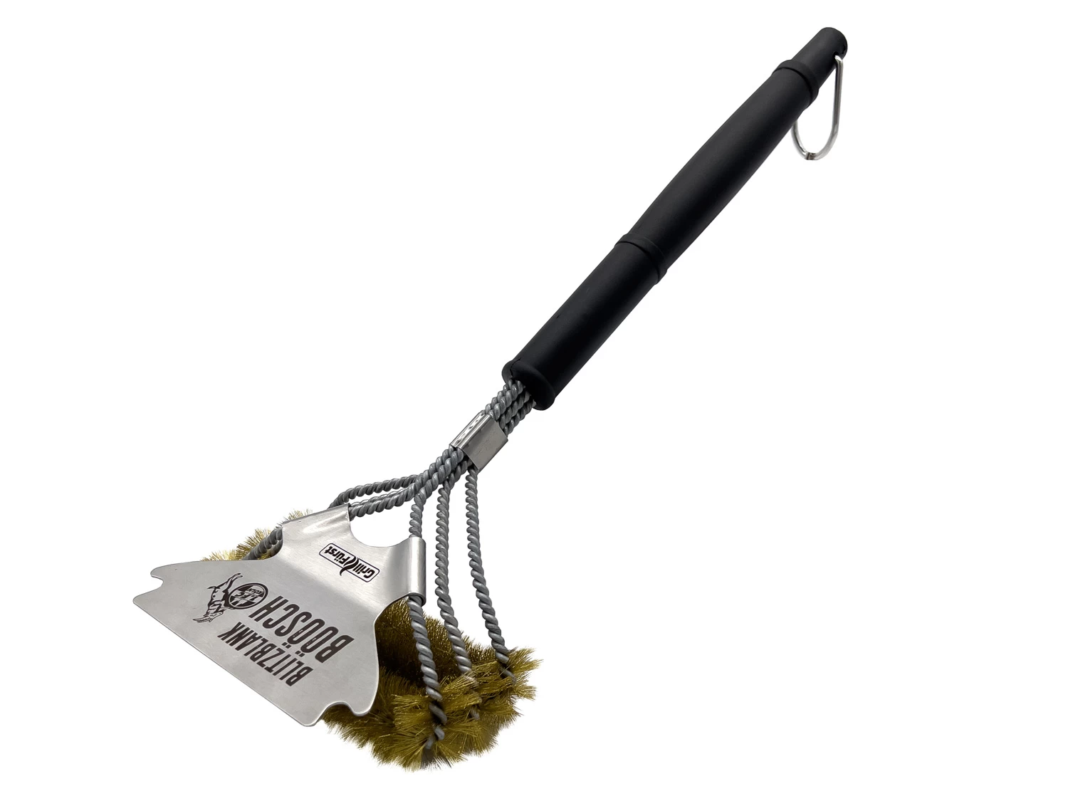 1 x Grillfürst Köln Grillbürste mit Messingborsten und Schaber – 3-fach Bürstenkopf