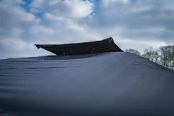 Wichtig ist aber auch noch das Spannen des Daches, denn die Spannseile verleihen dem Pavillion noch mehr Stabilität und vermeiden die Bildung von Wassertaschen auf dem Dach!