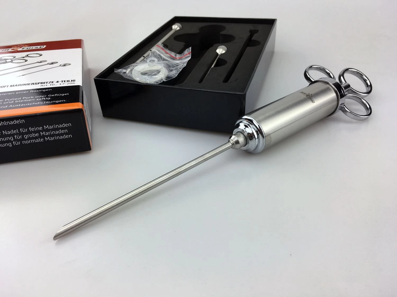 Unsere Profi Marinierspritze aus Edelstahl stellt durch die hochwertige und besonders stabile Verarbeitung ein komfortables Grill-/Küchentool für den täglichen Gebrauch dar.