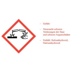 Gefahr: Enthält: Kaliumhydroxid, Natriumhydroxid: H314 verursacht schwere Verätzungender Haut und schwere Augenschäden.