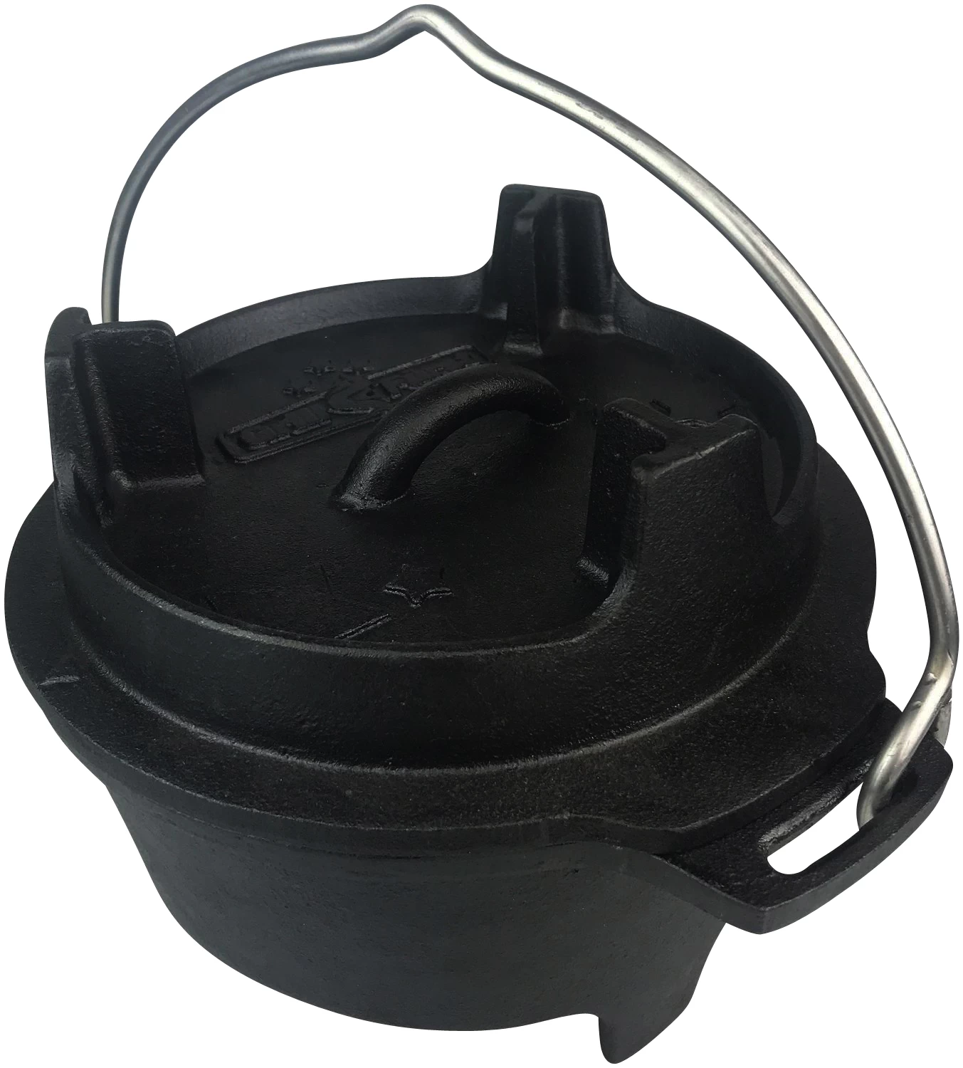 Durch die spezielle Auslegung der Standfüße finden Topf wie auch Deckel (wenn er als Grillpfanne genutzt wird) automatisch und sicher auf jedem Rost zu einem stabilen Stand. Somit sind Dutch Oven Modelle „ohne Füße“ nicht notwendig.